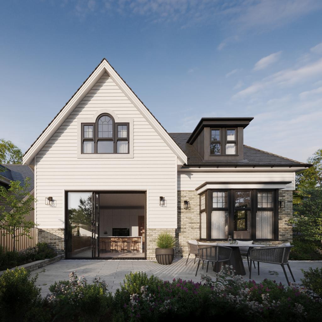 1 Durrant Road benefits from beautiful landscaped gardens, designed by The Landscape Service. It will feature a large block-paved driveway for off-road parking, a pathway framed with landscaped beds to the front door and a generous raised porcelain patio area with steps down to the lower lawn area. There will be soft lighting installed all around the garden so at night all the different areas of the garden are illuminated. New trees, planted all around the boundary, will offer screening and contribute to the sylvan character of the area.